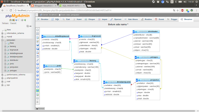 Untuk melihat relasi table yang kalian buat silahkan cek phpmyadmin kalian klik database penjualan lalu klik Designer di ujung sebelah kanan menu bar.